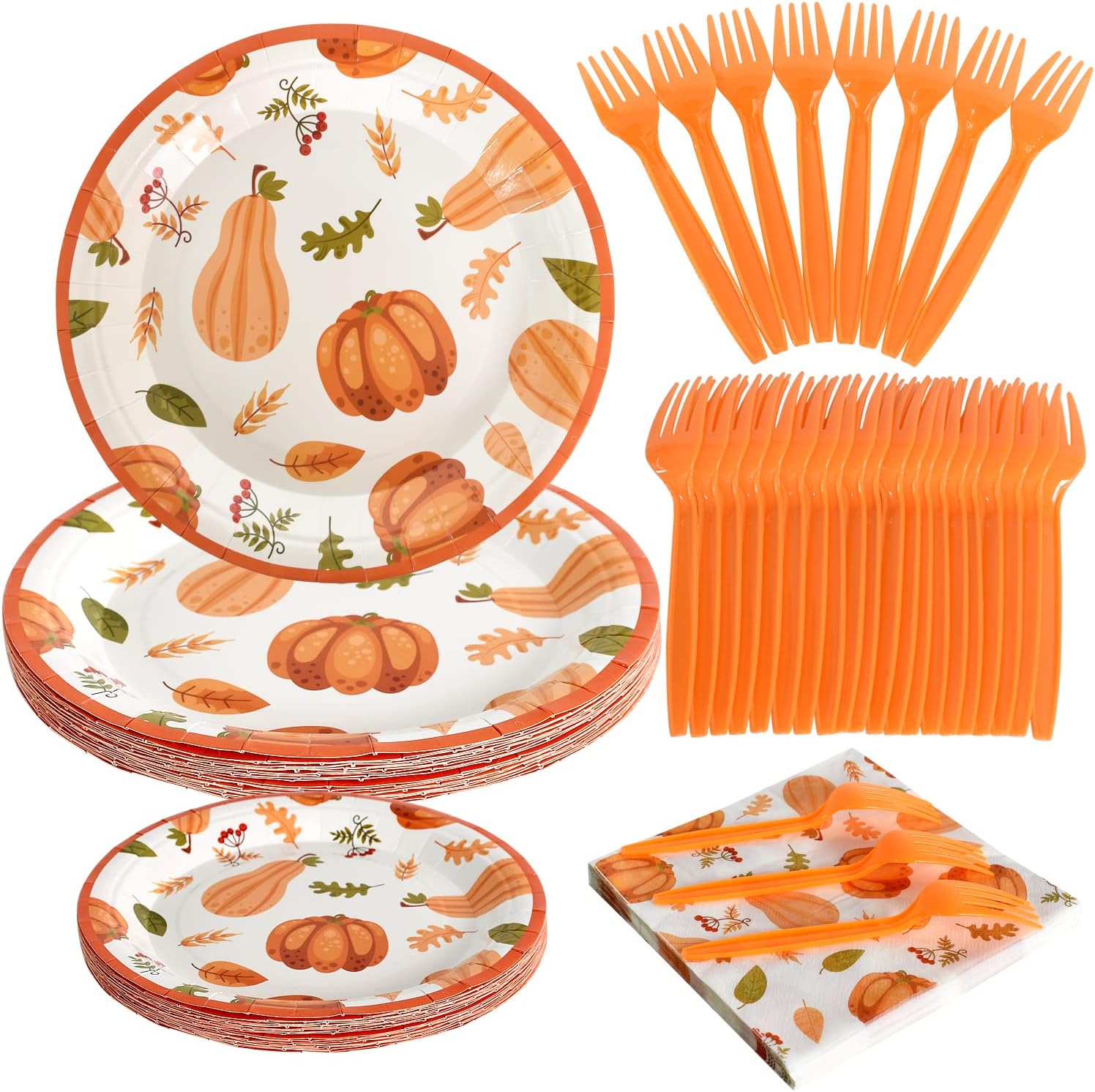 Thanksgiving Paper Plates and Napkins Disposable Dinnerware Set for 48